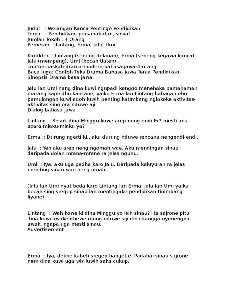 Drama Bahasa Jawa 4 Orang - Teks Drama Singkat Lucu : Check spelling or type a new query.